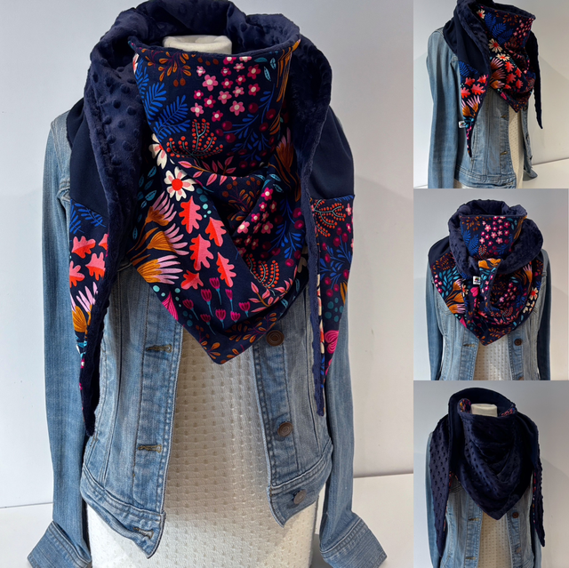 Chèche polaire taille standard – Chèche fleuri femme – Écharpe chaude réversible – Happy Bliss