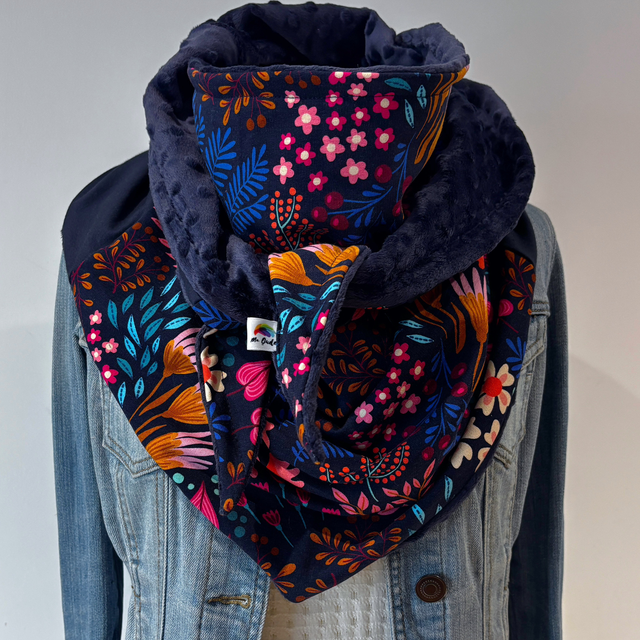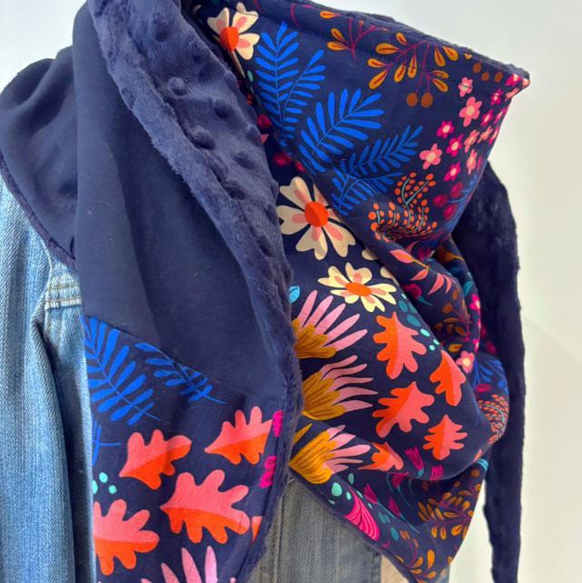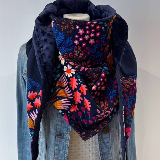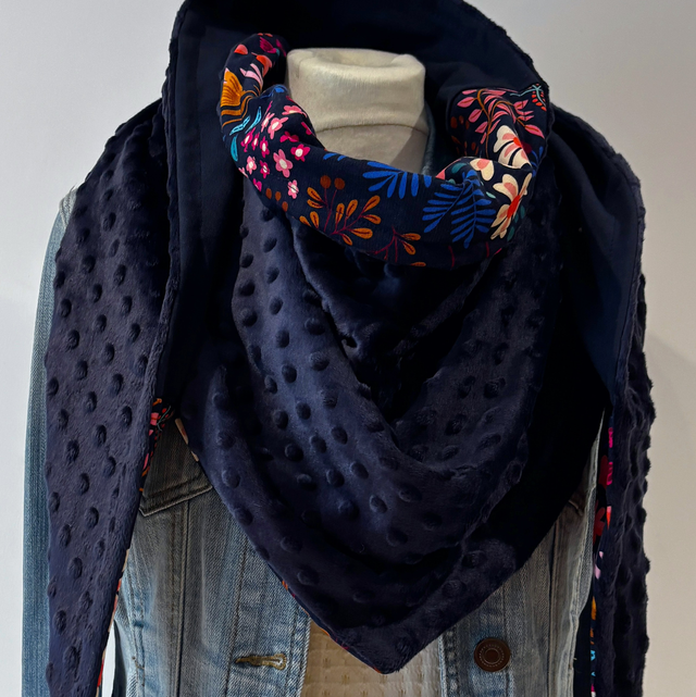 • une doublure en polaire minky bleu marine, très douce.