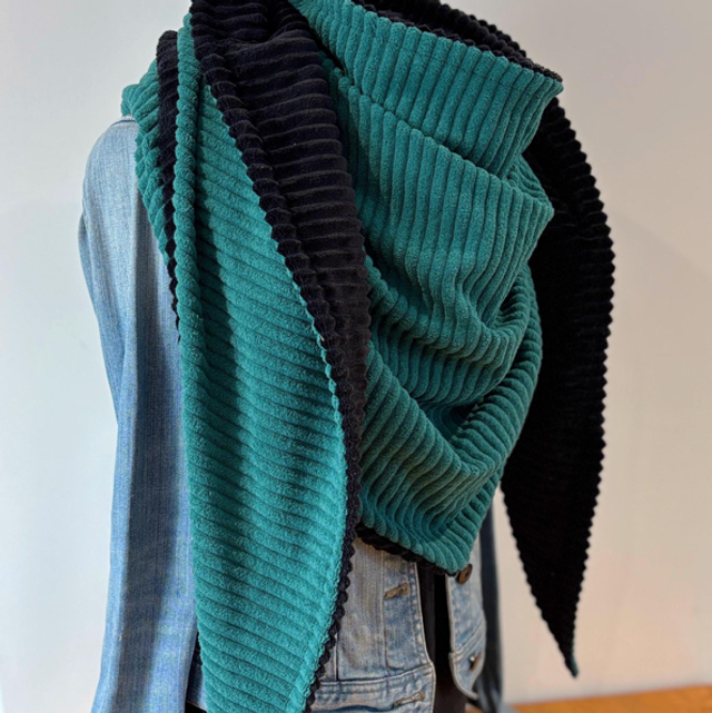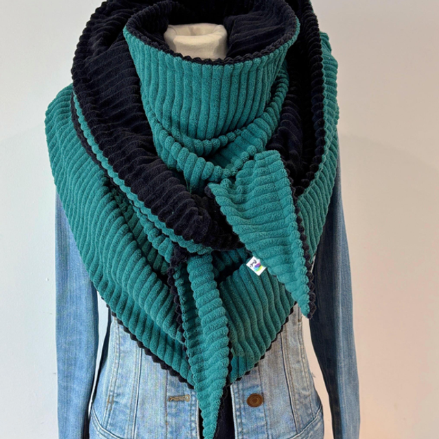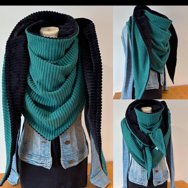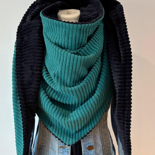 La maxi chèche est réversible et peut se porter de différentes façons.