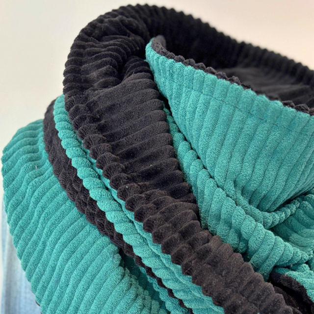 une face en polaire côtelé vert mer
