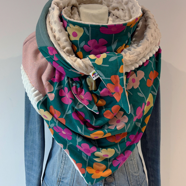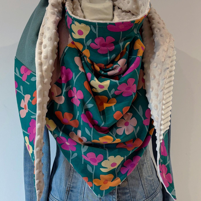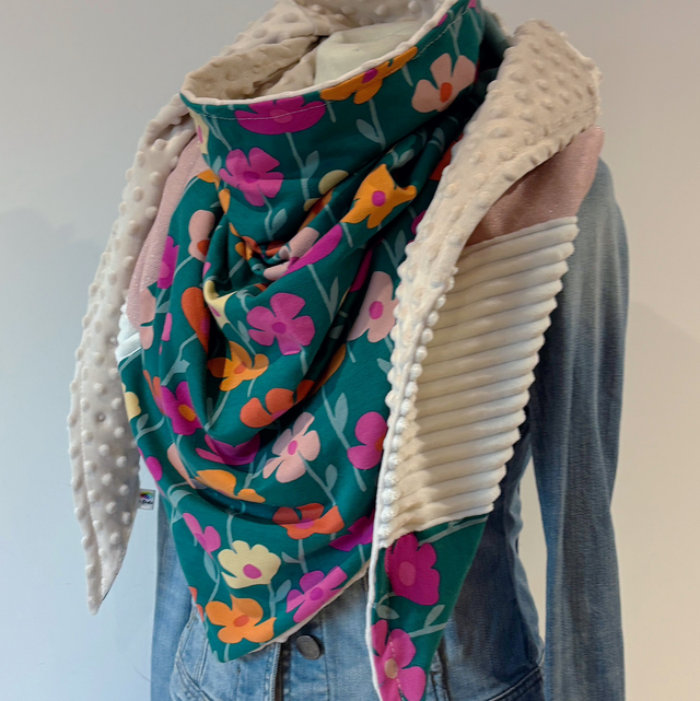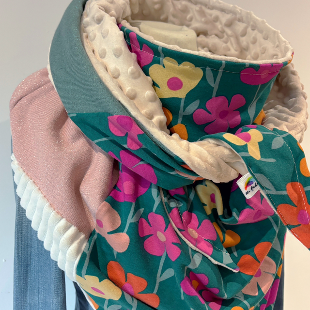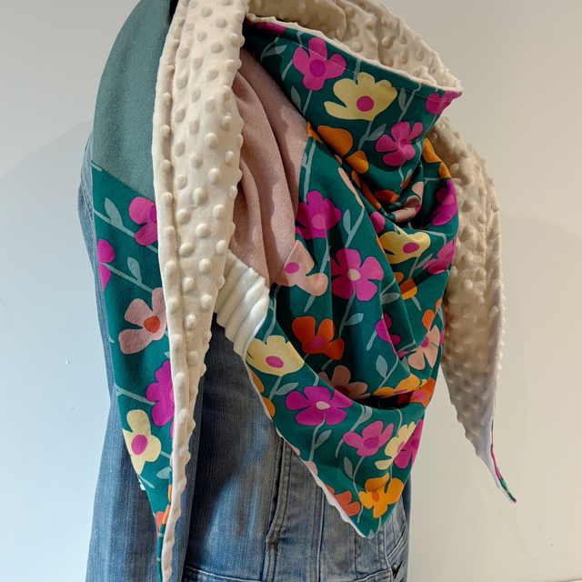 La maxi chèche est réversible et peut se porter de différentes façons.