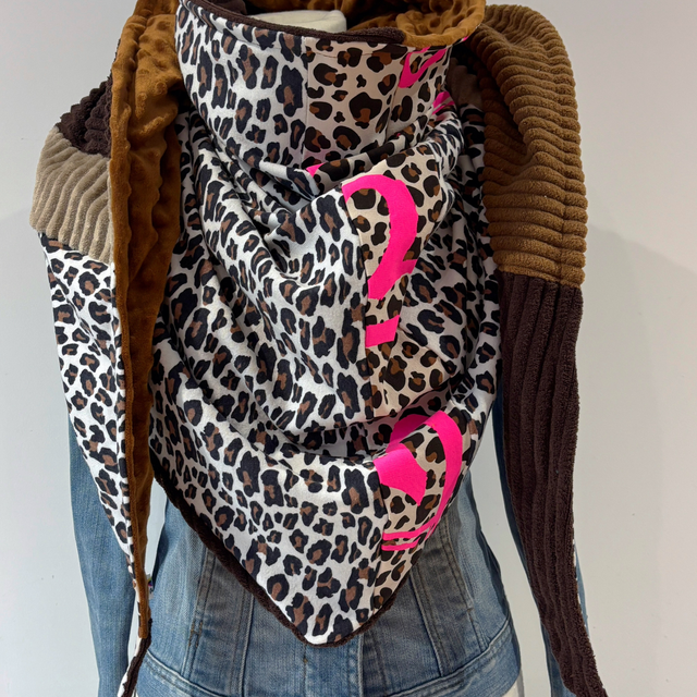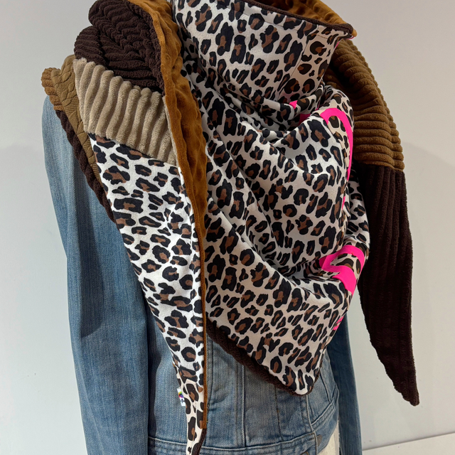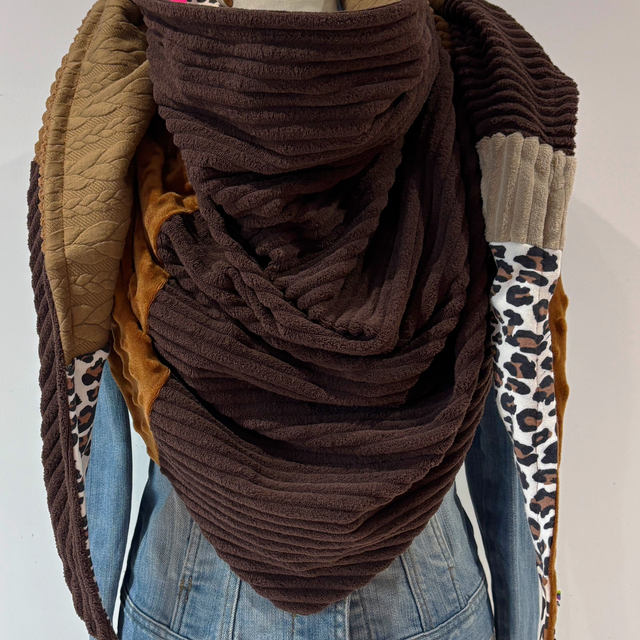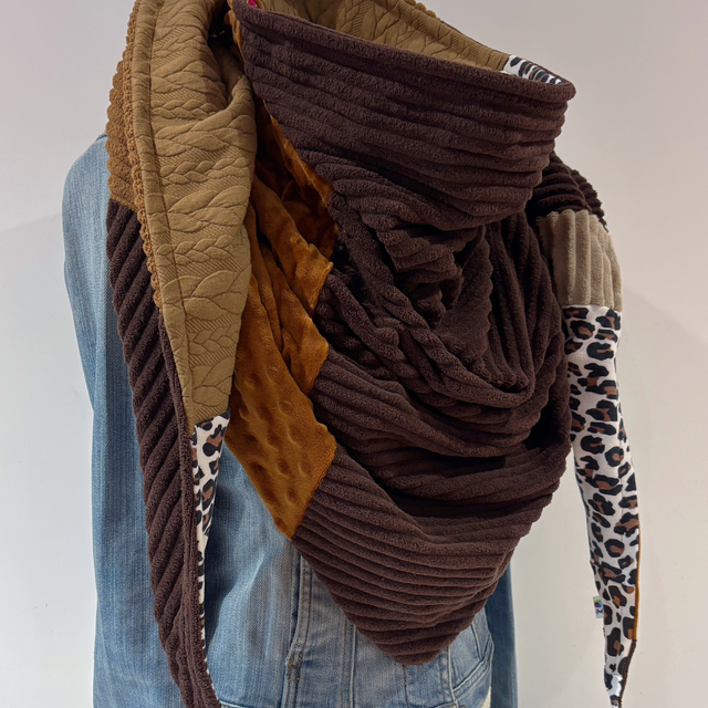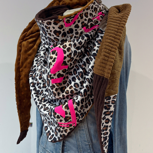 La maxi chèche est réversible et peut se porter de différentes façons.