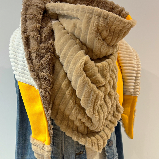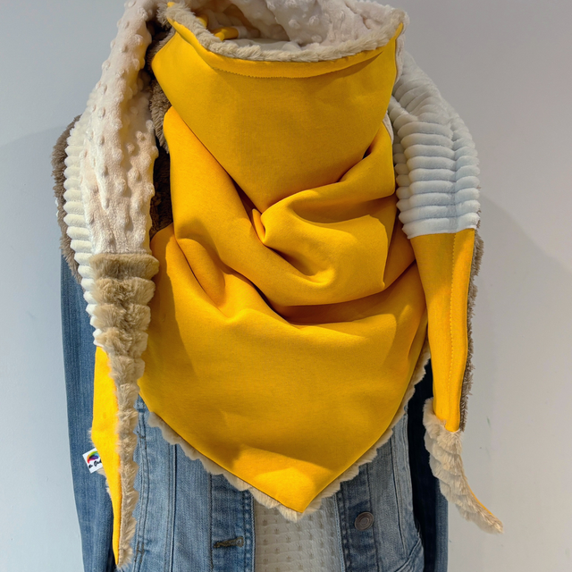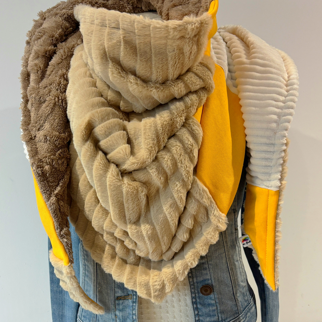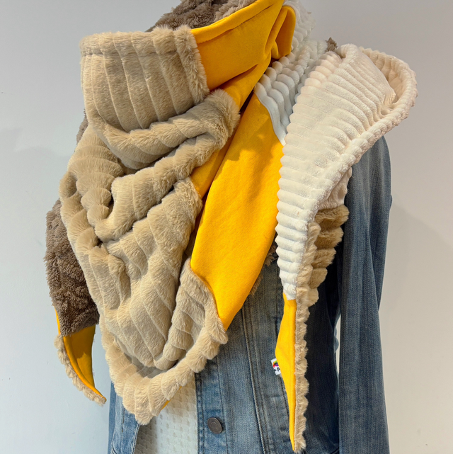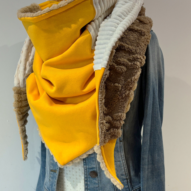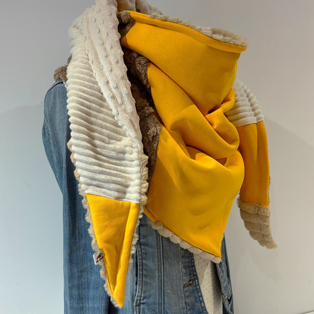 La maxi chèche est réversible et peut se porter de différentes façons.