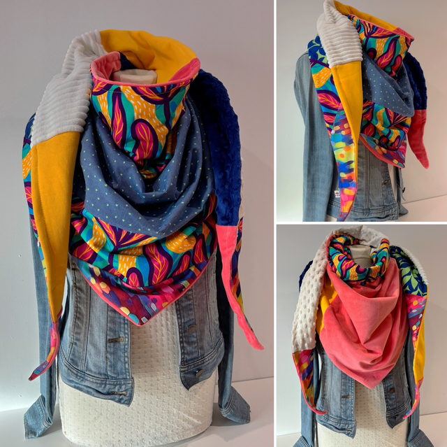 Maxi chèche, écharpe en Double Patchwork