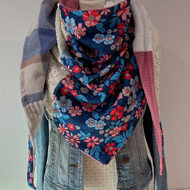 La maxi chèche est réversible et peut se porter de différentes façons.