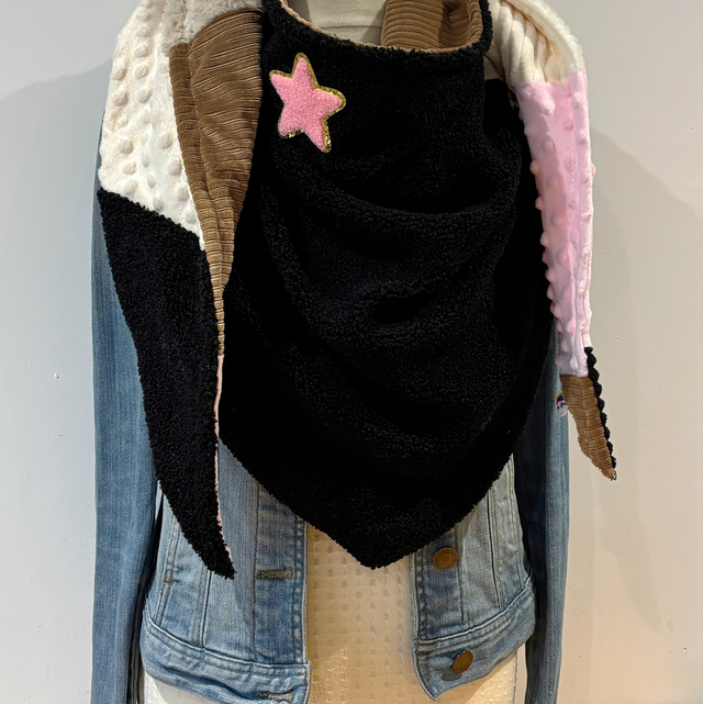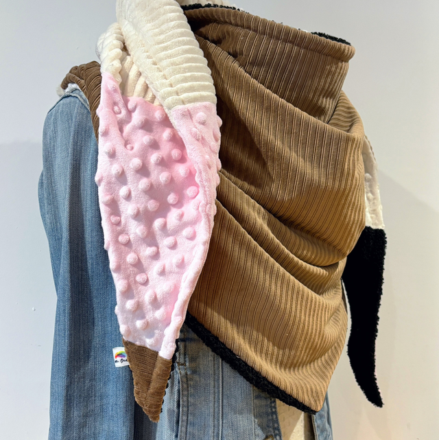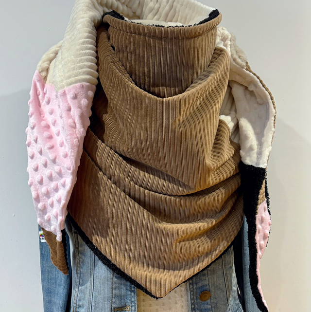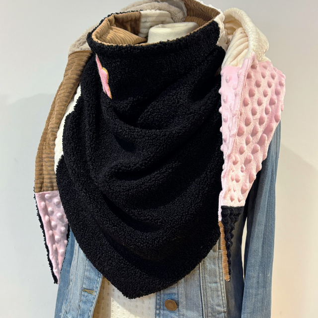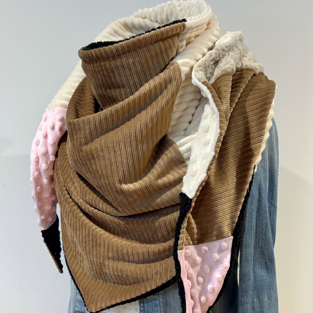 La maxi chèche est réversible et peut se porter de différentes façons.