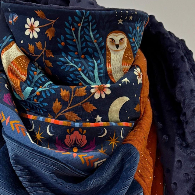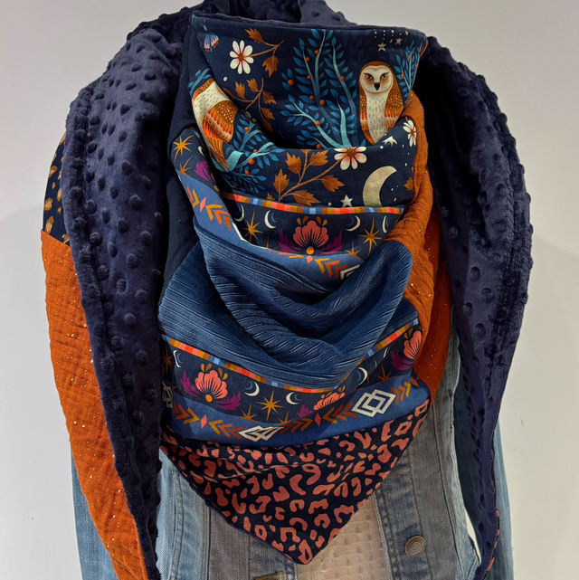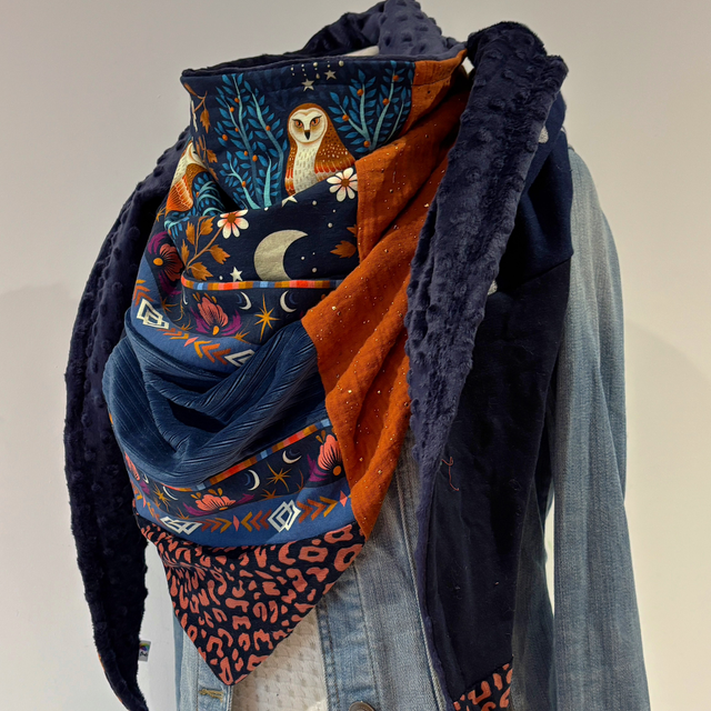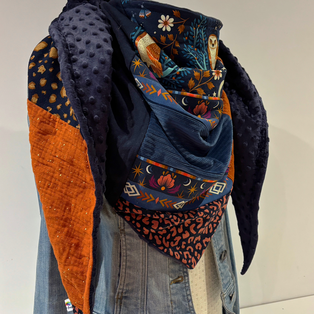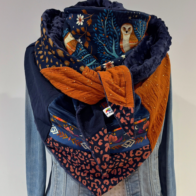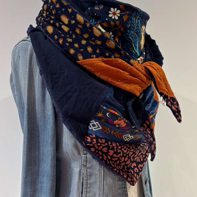 La maxi chèche est réversible et peut se porter de différentes façons.