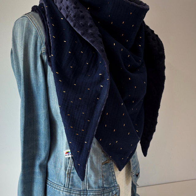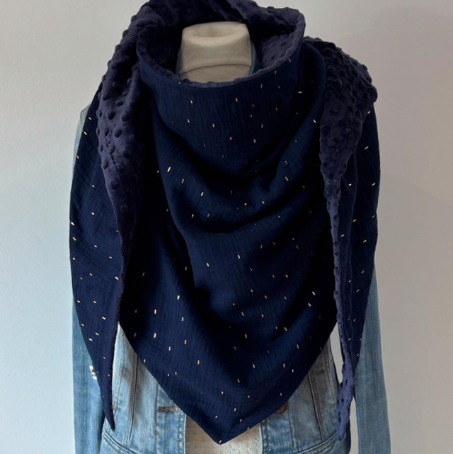 Maxi Chèche Happy confettis bleu marine doublée en polaire minky bleu marine
