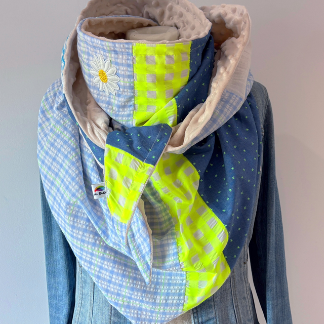 La maxi chèche est réversible et peut se porter de différentes façons.