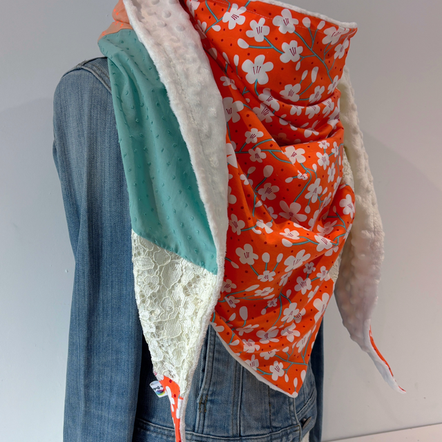 La maxi chèche est réversible et peut se porter de différentes façons.
