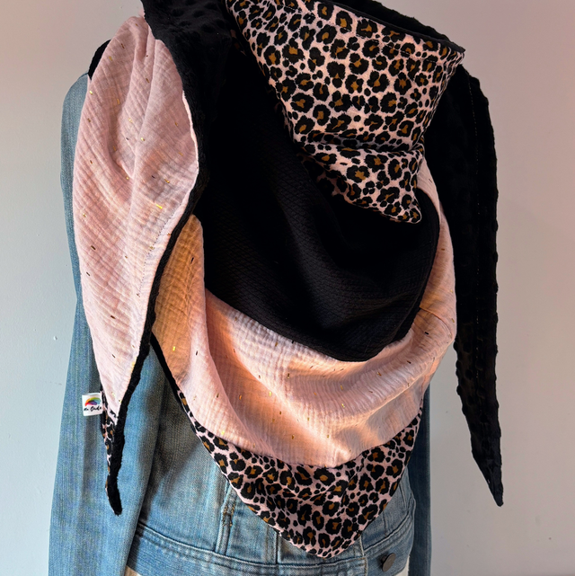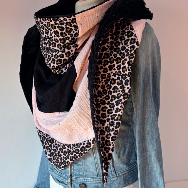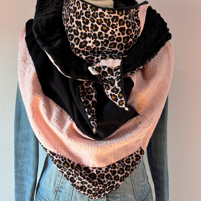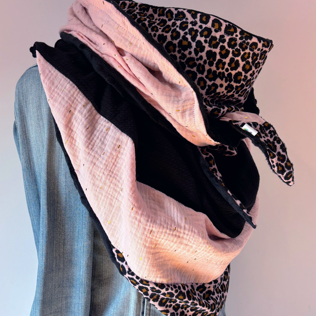 La maxi chèche est réversible et peut se porter de différentes façons.