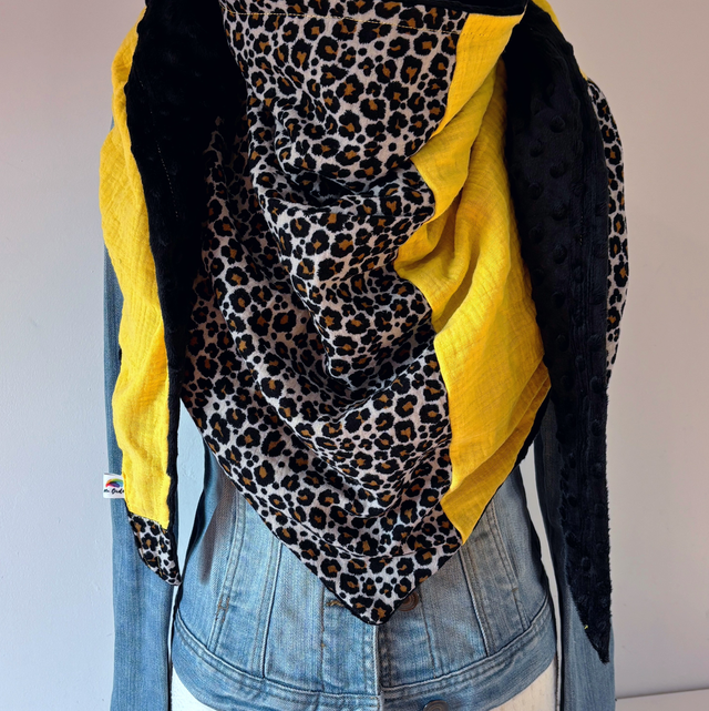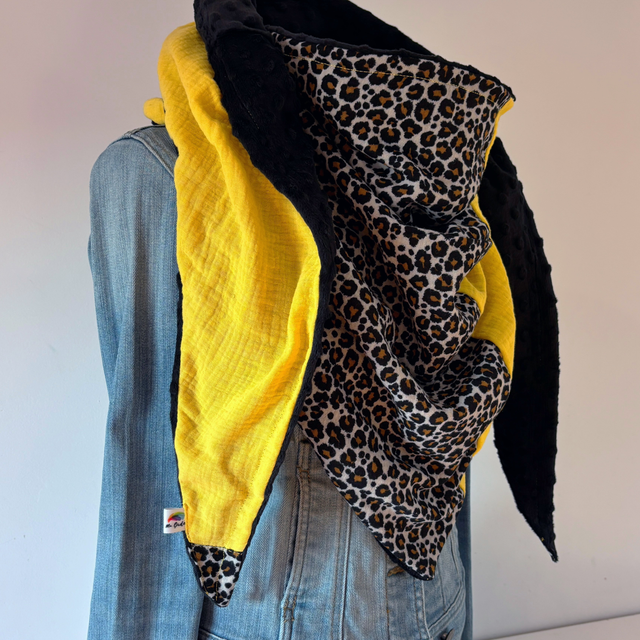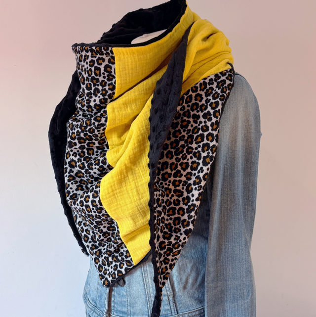 La maxi chèche est réversible et peut se porter de différentes façons.