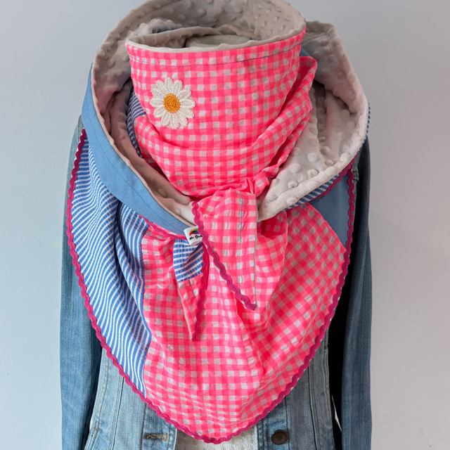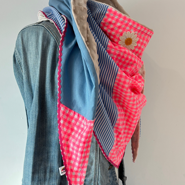 La maxi chèche est réversible et peut se porter de différentes façons.