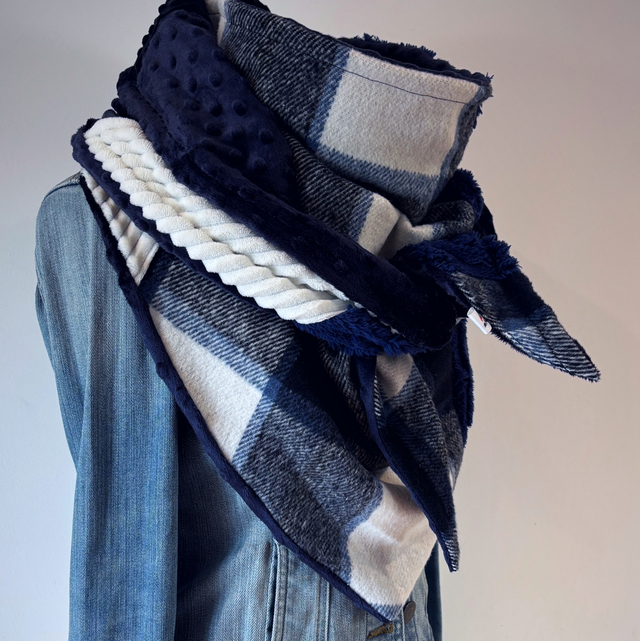 La maxi chèche est réversible et peut se porter de différentes façons.