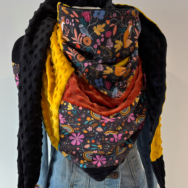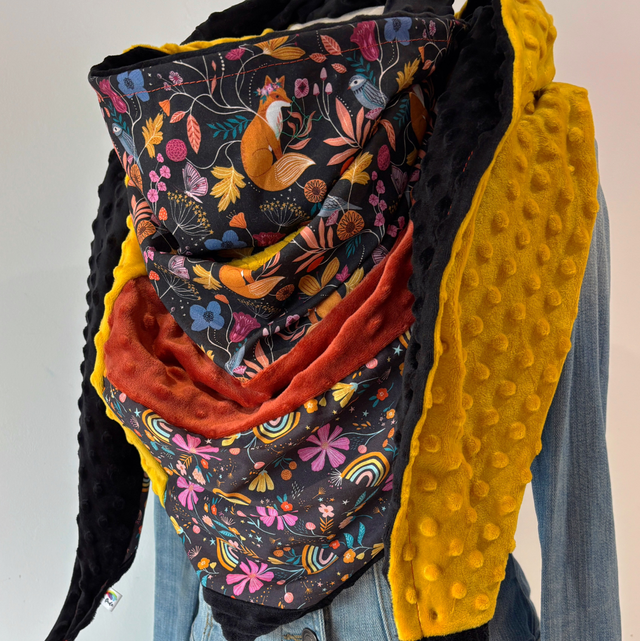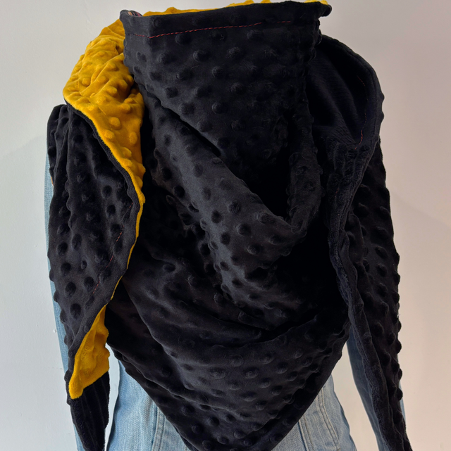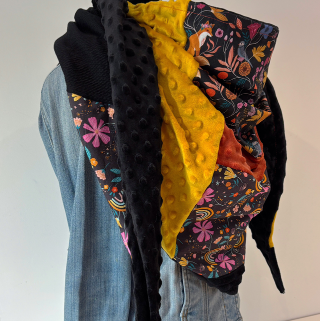 Maxi chèche, écharpe en Patchwork doublée en polaire minky noire