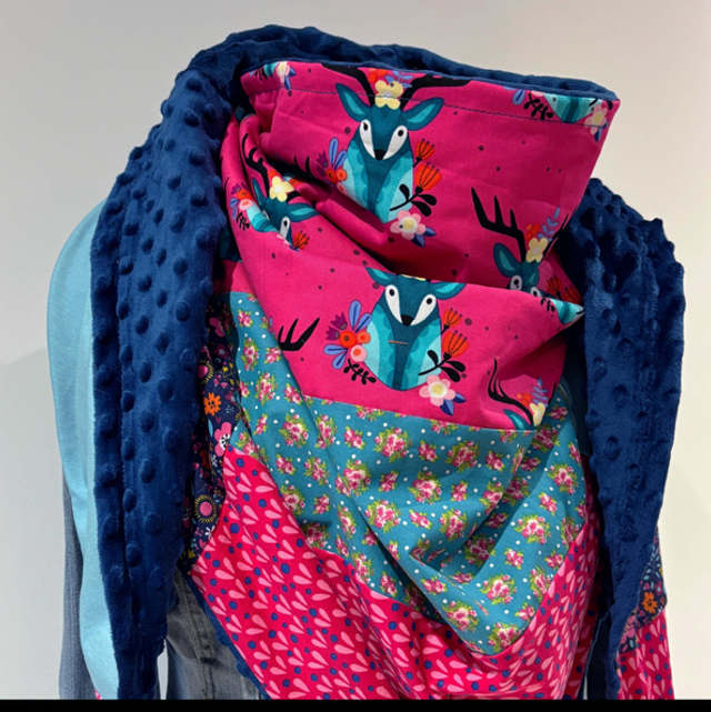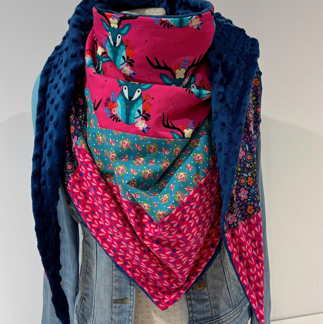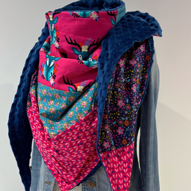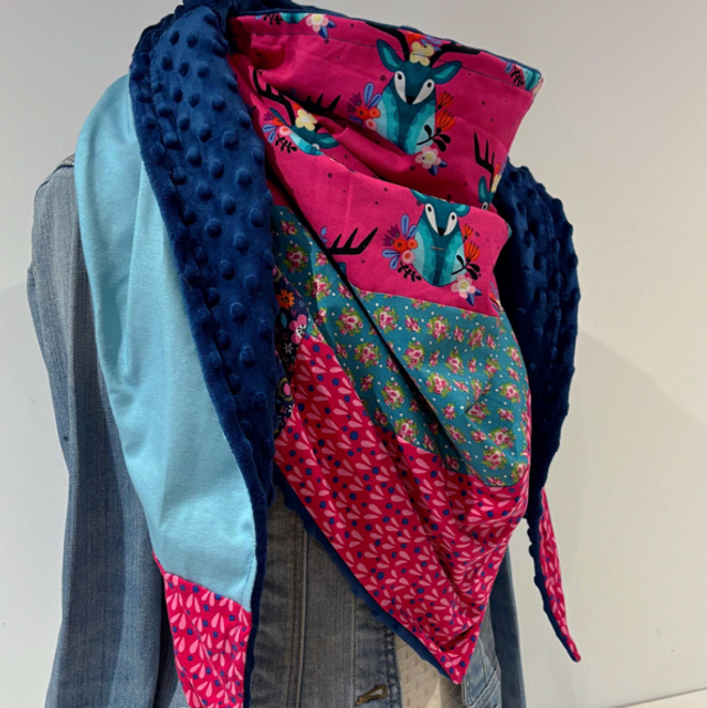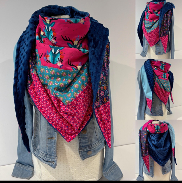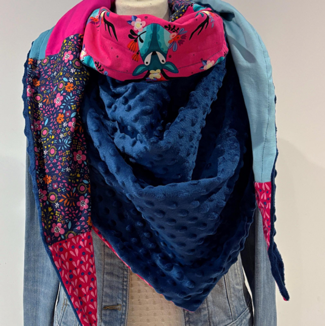 La maxi chèche est réversible et peut se porter de différentes façons.