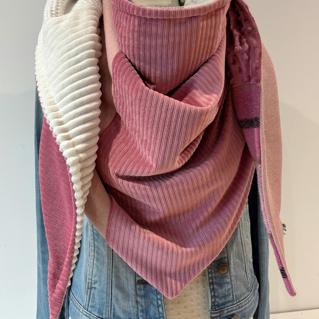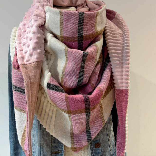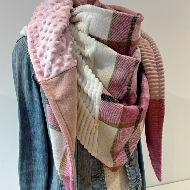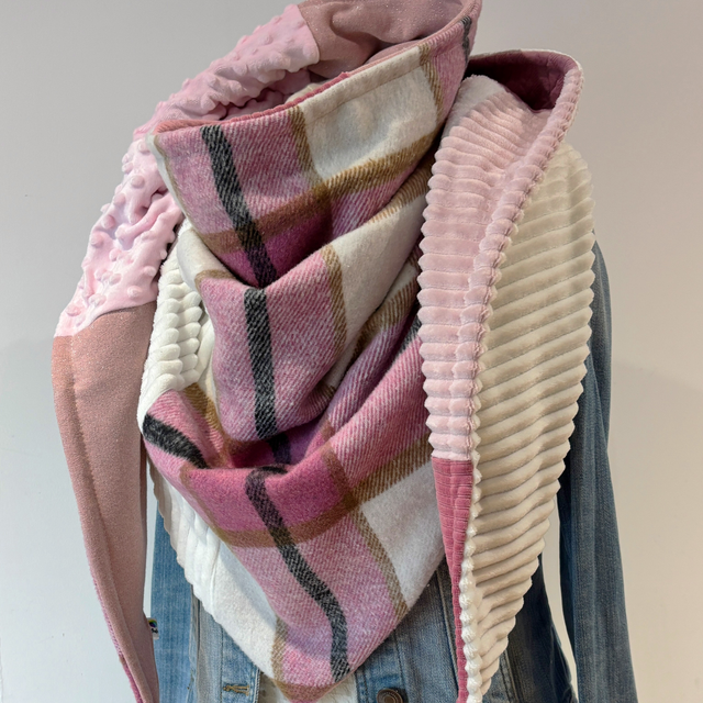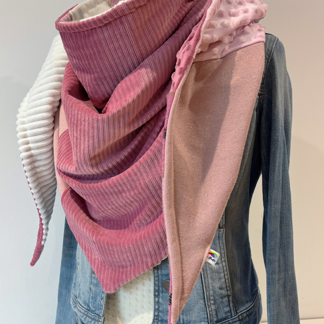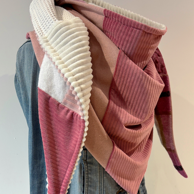 La maxi chèche est réversible et peut se porter de différentes façons.